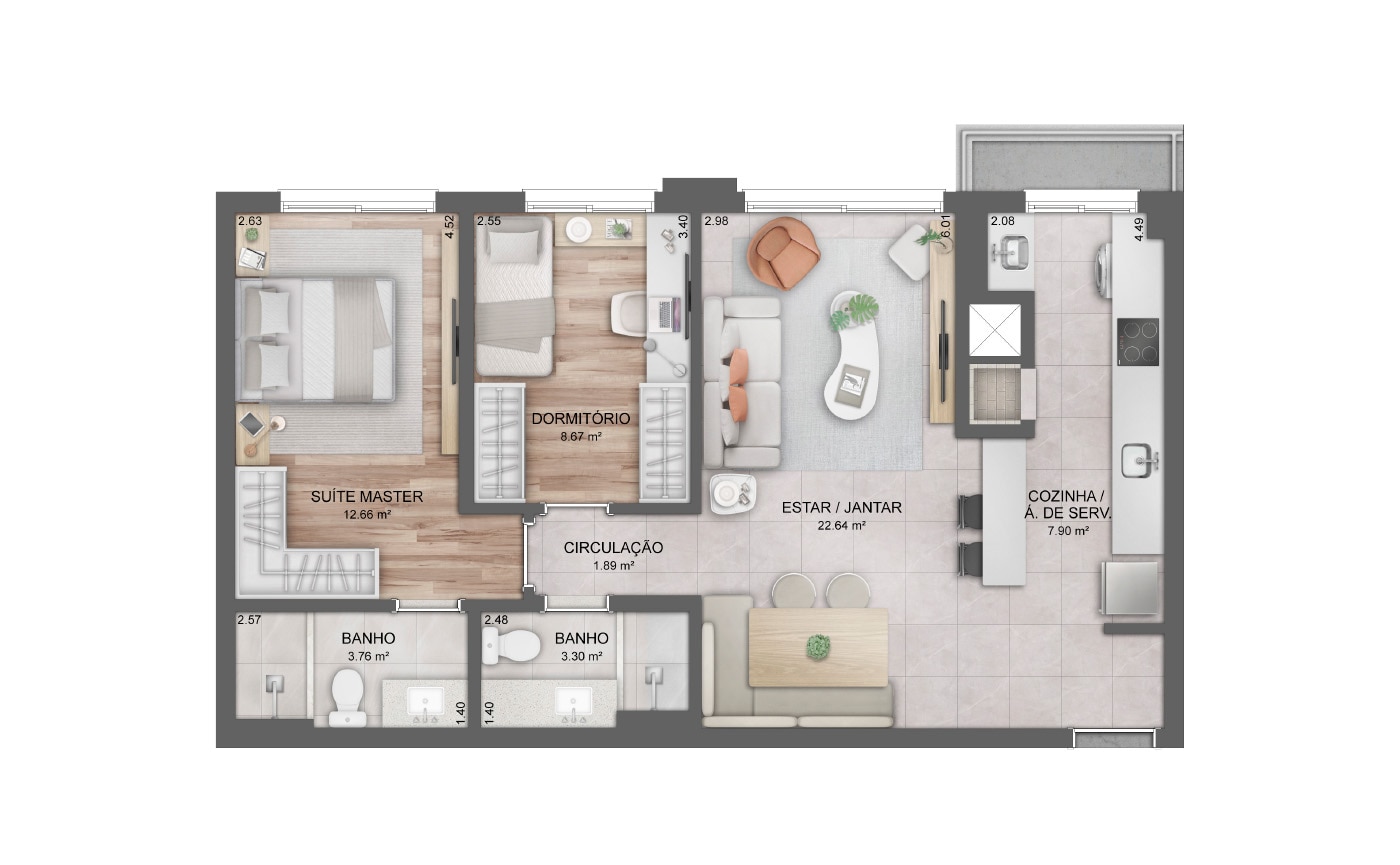 2 DORMITÓRIOS COM SUÍTE / 72m2